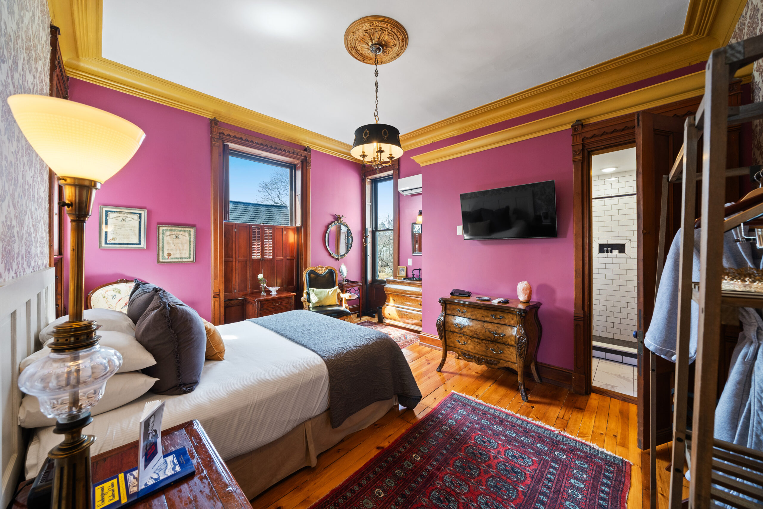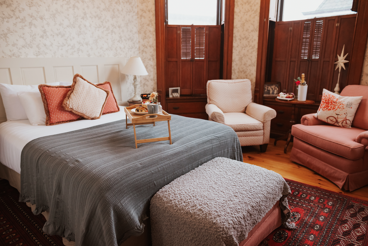 Upon arrival, allow us to welcome you with a complimentary beverage at our showstopping Piano Bar – a truly unique centerpiece crafted from original furniture. Be sure to admire the delicate petals and original ivory keys, beautifully captured in local artwork. From the moment you step inside, you’ll be transported back in time to the Gilded Age. You’ll be greeted by your Innkeepers and shown to your beautifully appointed room, each uniquely decorated and featuring modern amenities.